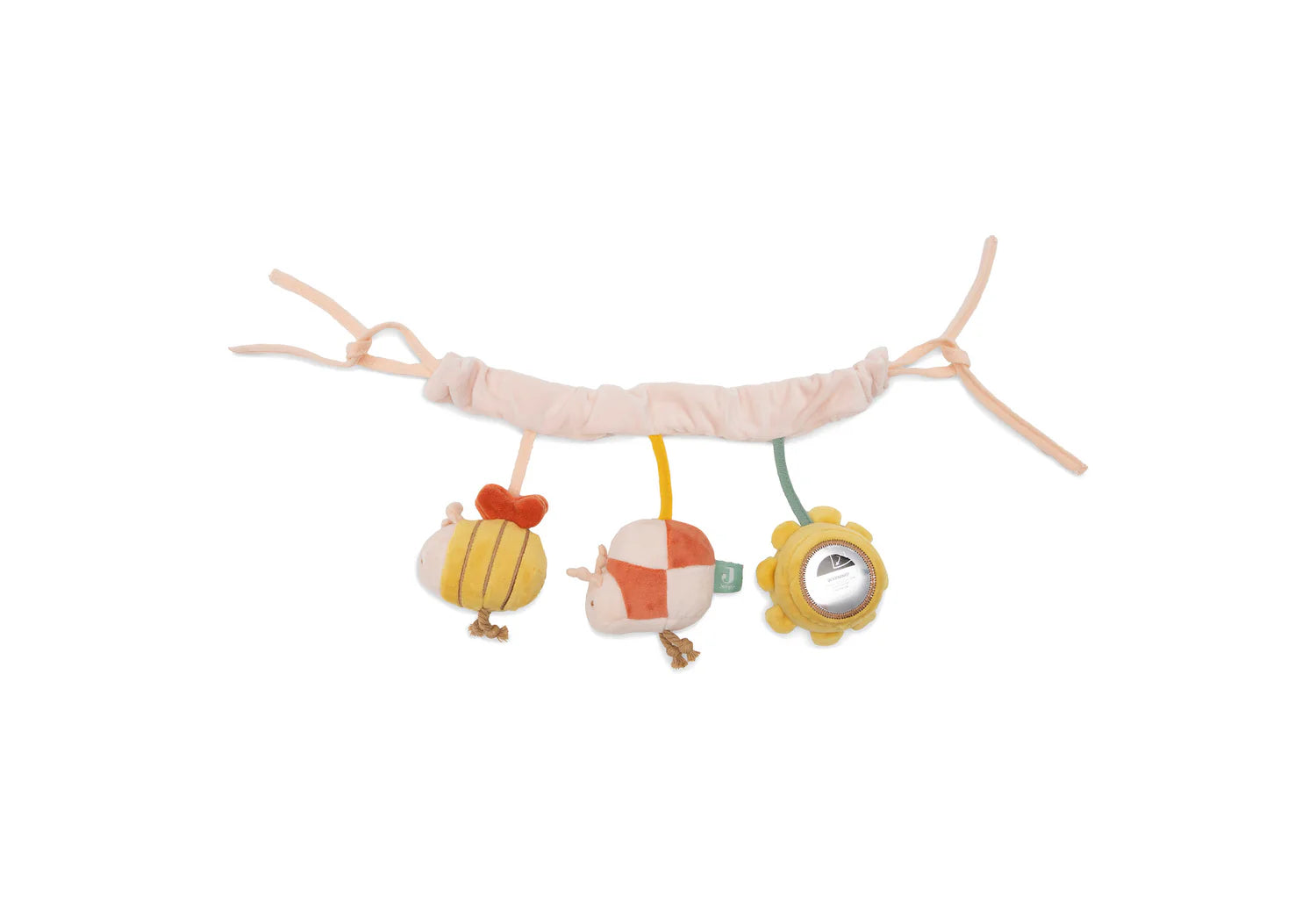 Het zonnetje bevat een spiegeltje waarin je kleintje zichzelf kan ontdekken, het bijtje maakt een leuk knisperend geluid en het lieveheersbeestje heeft een zacht belletje binnenin. Samen stimuleren ze de zintuigen en nodigen ze uit om te grijpen, kijken en luisteren.