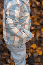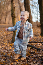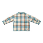 Eenheid prijs / PerDit flanellen overhemd is precies wat je zoekt voor je kleintje! Met een klassieke ruitprint in stijlvol Stone Blue heeft je kleintje een outfit die perfect is voor zowel gezellige winterdagen thuis als avonturen buitenshuis. Het zachte, warme flanel is gemaakt van biologisch katoen en Oekotex-gecertificeerd, dus je kunt met een gerust hart toekijken hoe hij de wereld ontdekt. De houtlook knopen geven hem net dat beetje extra. En die borstzakken? Perfect om zijn kleine schatten in op te bergen.