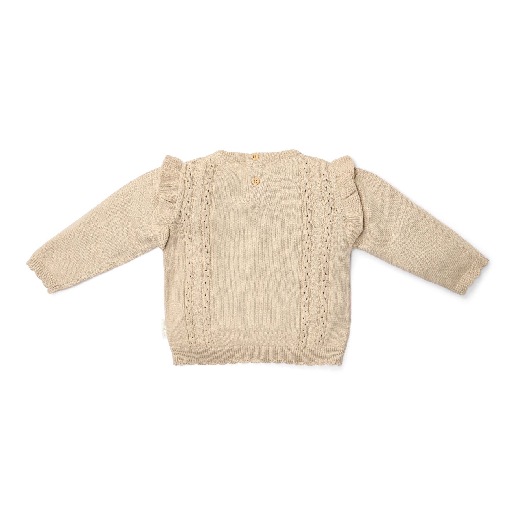 Eenheid prijs / PerDe klassieke kabeldetails en charmante ruches op de schouder maken van deze trui een mini fashion statement. Perfect voor kleintjes die graag schitteren. Deze gebreide trui is het ultieme voorbeeld van stijl en comfort, met een schattige twist! Gemaakt van zacht, organisch katoen en Oekotex-gecertificeerd, dus helemaal veilig voor de gevoelige huid.