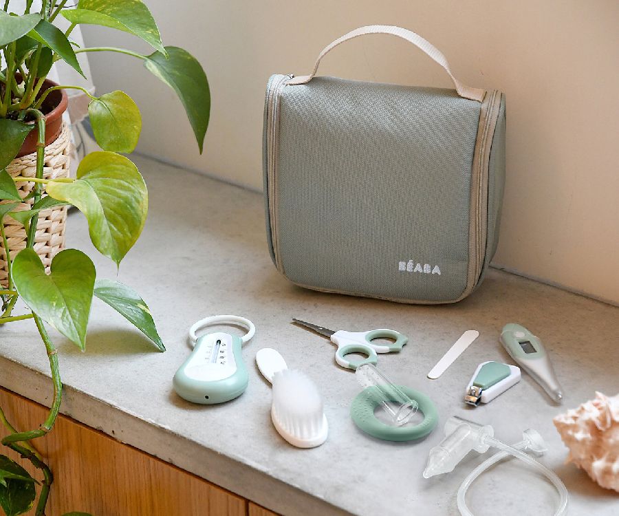 - Veel accessoires: Badthermometer, digitale thermometer, schaar, nagelknipper, haarborstel, kam, bijtring, tandvleesmassager, manuele neusaspirator, nagelvijl