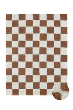 Voor de liefde voor tegels! Dit ontwerp toont het traditionele dambordpatroon van keukentegels op een tapijt. De contrasterende vierkanten in toffee en crème zorgen voor een opvallend accent in elk interieur. De voegen tussen de tegels laten het onderliggende canvas zien, gemaakt door onze RugCycled®-basis te combineren met natuurlijk, ongeverfd katoengaren. Keukentegels voelden nog nooit zo zacht aan om op te lopen!