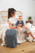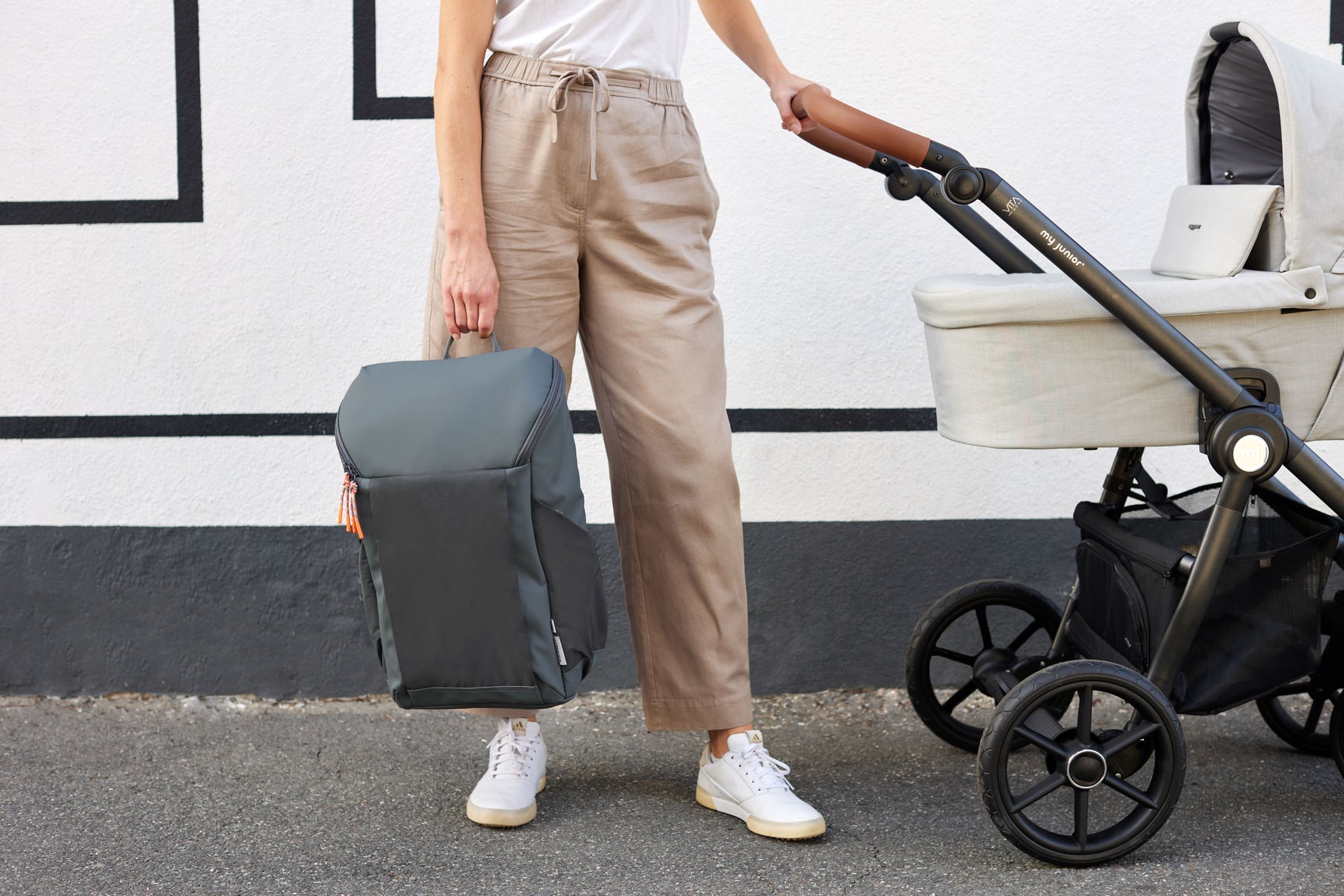 Gemaakt van 100% gerecycled polyester en uitgevoerd in reflecterend antraciet voor extra zichtbaarheid in het donker. De perfecte metgezel voor moderne ouders onderweg.